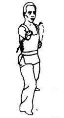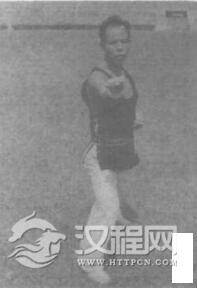 上动不停,左拳向前冲出。同时右拳收回腰间,伴之发出“啊—”的声音。眼看左拳。
