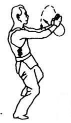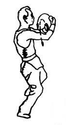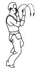 上动不停,两肘同时用力向外下斜线顶撞出去。