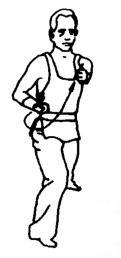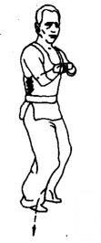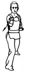 身体略左转成半马步。右虎爪变拳向下向里划弧,再屈肘挑格至右肩上。左虎爪变拳收回腰间。随即身体向右转成右弓步,右拳顺势向前挑送出去。