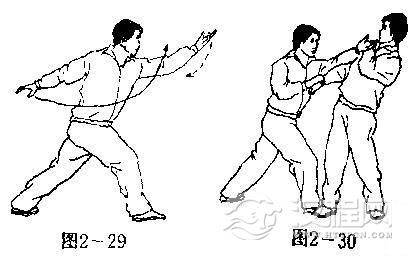 【用法】我以牵挂跃跌敌,敌如闪挪,我可急速向前插击敌目(2-30 ).