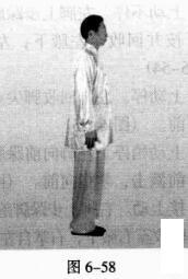 如此反复练习,至最后一个动作,后脚上步成并步,两臂自然下垂。(图6-58)