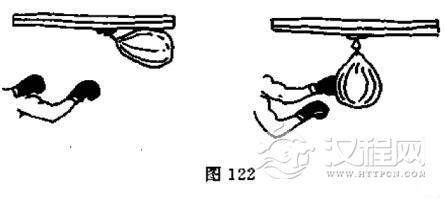 动作和要点:出拳路线、击球时间和击打的部位都同“单拳直击法”。初练时,单拳每击四五次可交换一次,然后逐渐减少次数,最后一拳交换一次。