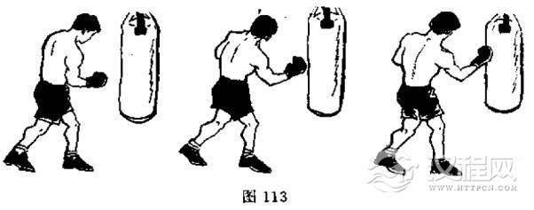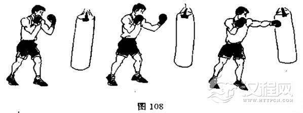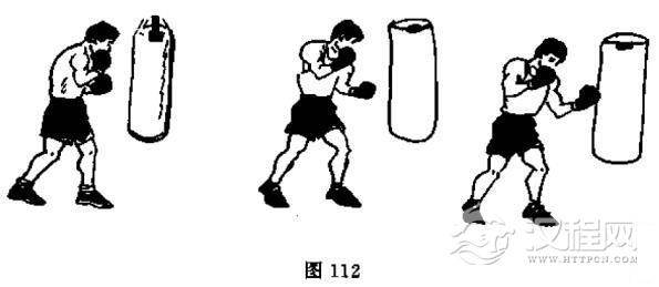 ④打沙袋的练习不宜过多,以免肌肉发僵,形响速度。每次练习3分钟为1组,中间休息1分钟,平时练3-5组即可,赛前可增加组数。