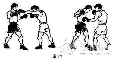 (3)左直拳击头接左上钩拳击腹(图83)