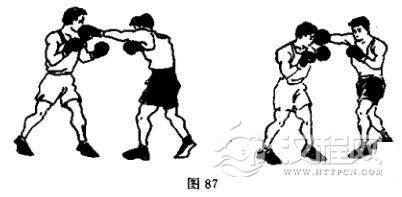 (7)左直拳击头接右摆拳击头(图87)