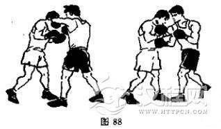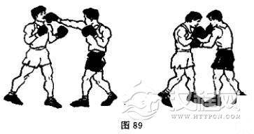 (9)右直拳击头接左上钩拳击腹(图89)