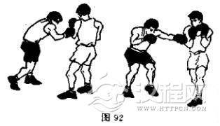 (12)右摆拳击腹接左摆拳击腹(图92)