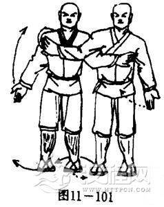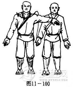 甲右手外展;左手抓乙不放.目视前方(图11一101).