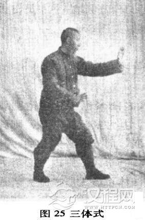收式时,走到原起点处,左手右足在前,回身仍与前回身式相同。回过身时,右手左足在前,进步、跟步仍如前式,停住(图27)。