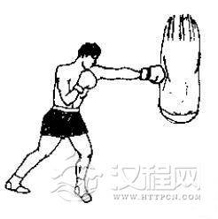(8)初学者在击打沙袋练习时,一定要注意动作的正确性,击打时动作的速度应先慢后快,重量应先轻后重。并且一定要结合步法进行击打,不能只注重招式,而忽略步法和全身协调用力的技术要求。否则在实战和比赛中难以得到应有的发挥。