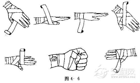 西洋拳击绷带缠法.见图4一5与图4一6