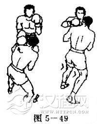 泰拳右直拳防守:向内闪躲(见图5一49)