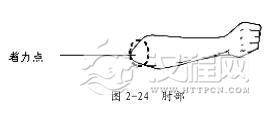 擒敌拳肘法是以肘部为着力点(图 2-24) ,在近距离对敌、颈部和胸、腹、肋、背部进行攻击的技法。