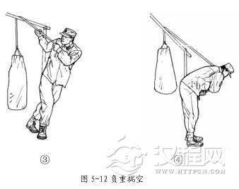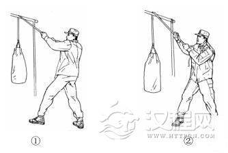 如:马步推砖、戴重拳套和腿系沙袋空击或击打吊袋,并视情增减负重,以提高击打速度和爆发力。