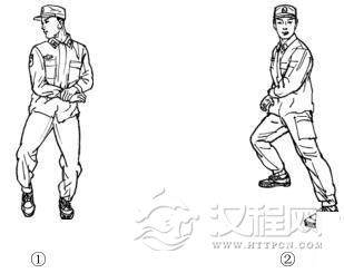 动作要求:上架有力、弹踢迅猛、砍击准确。