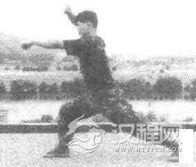 实用技法:敌上左脚成左弓步,同时右拳劈击我头部。我重心降低成左跪步,同时左拳上架,右拳下击敌腹部,动作不停,我乘势起身右脚向左前上步,绊住敌右腿,同时左拳变八字掌索推敌咽喉,敌必倒地,我右脚也可向右前方上步,绊住敌左腿,并以双手推击敌胸部,敌必倒地。
