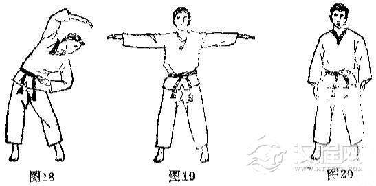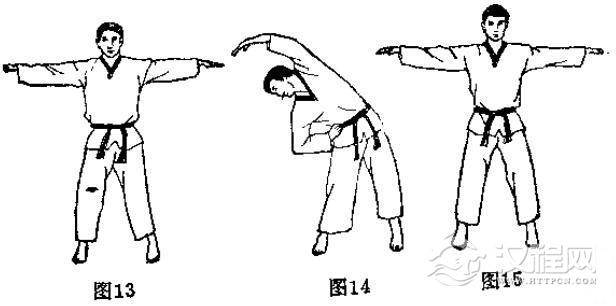 见(图13-图20)的动作,上体向体侧屈肘不能前俯或后仰。