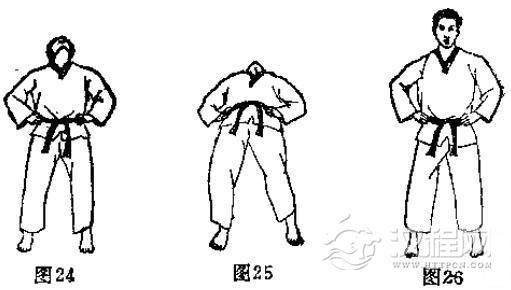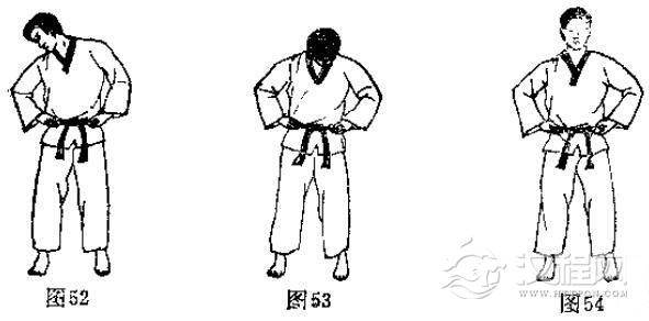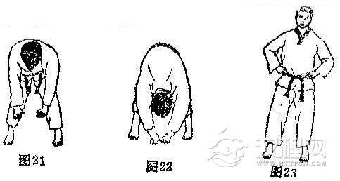 见(图21一图26)的动作,上体前俯时,两手尽量挨地,两膝挺直,后仰时尽量下腰。