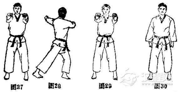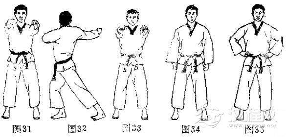 见(图27-图35)的动作。注意扭转髋关节时,头眼的方向与转体方向保持一致。
