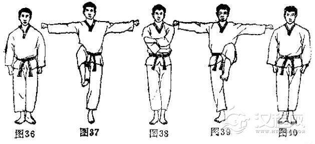 见(图36-图40)的动作,大腿尽量上抬,身体保持平衡。
