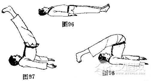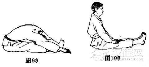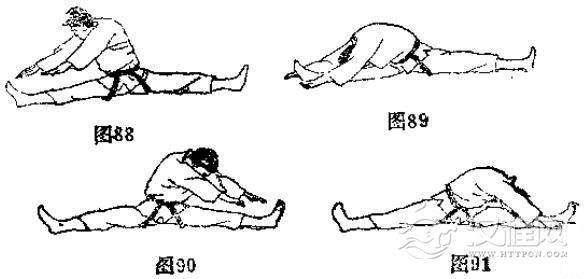 见(图88一图91)的动作。侧屈时尽量使头挨近膝盖。