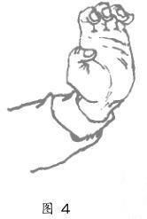 拇指弯曲外展,其余四指并紧,使第二、三节指骨弯曲,但不得屈(拢图4)。