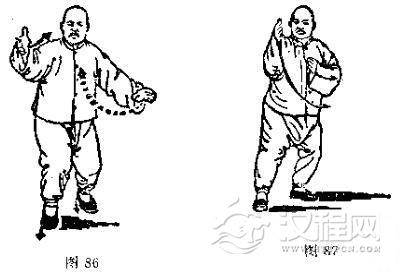 1.由斜飞式过渡到图87的动作,腰部以及上下肢动作要同时开始,同时完成。