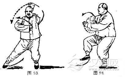 动作一、二与第二十四式“撇身捶”动作一、二相同。 (接图93-94)