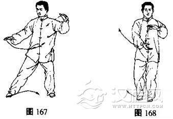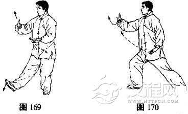 (2)同“左揽雀尾”(3)动作,只是左右方向相反(图169, 170)