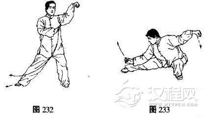 (2)同“左下势独立”(2)动作,只是左右相反(图232, 233)