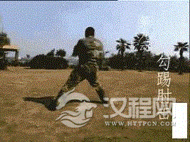 要求:勾踢重心要稳,肘击要猛。用途:勾踢脚跟、脚腕、小腿,击胸、腹部。