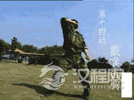 要求:上步变掌要快,扼喉、绊腿要协调一致。用途:挡抓敌臂绊腿、扼喉。