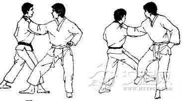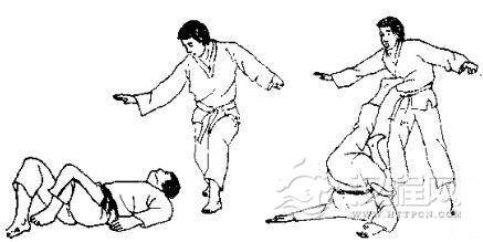 跆拳道被摔和被绊倒反踢心窝和反踢面部等