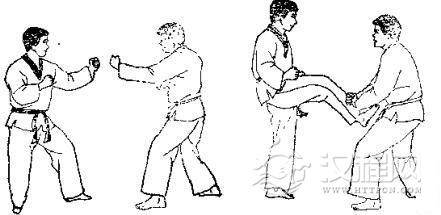 跆拳道《踢裆击人中心窝接肘击颌部》