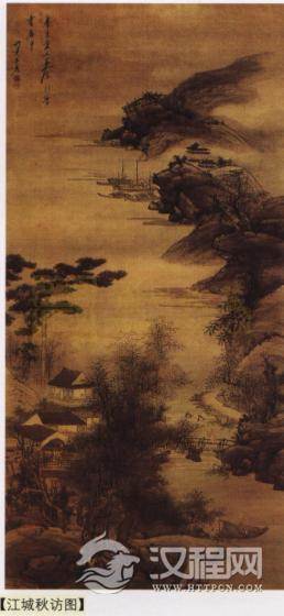 吴宏 江城秋访图 绢本设色 160.8×78.2厘米 旅顺博物馆藏