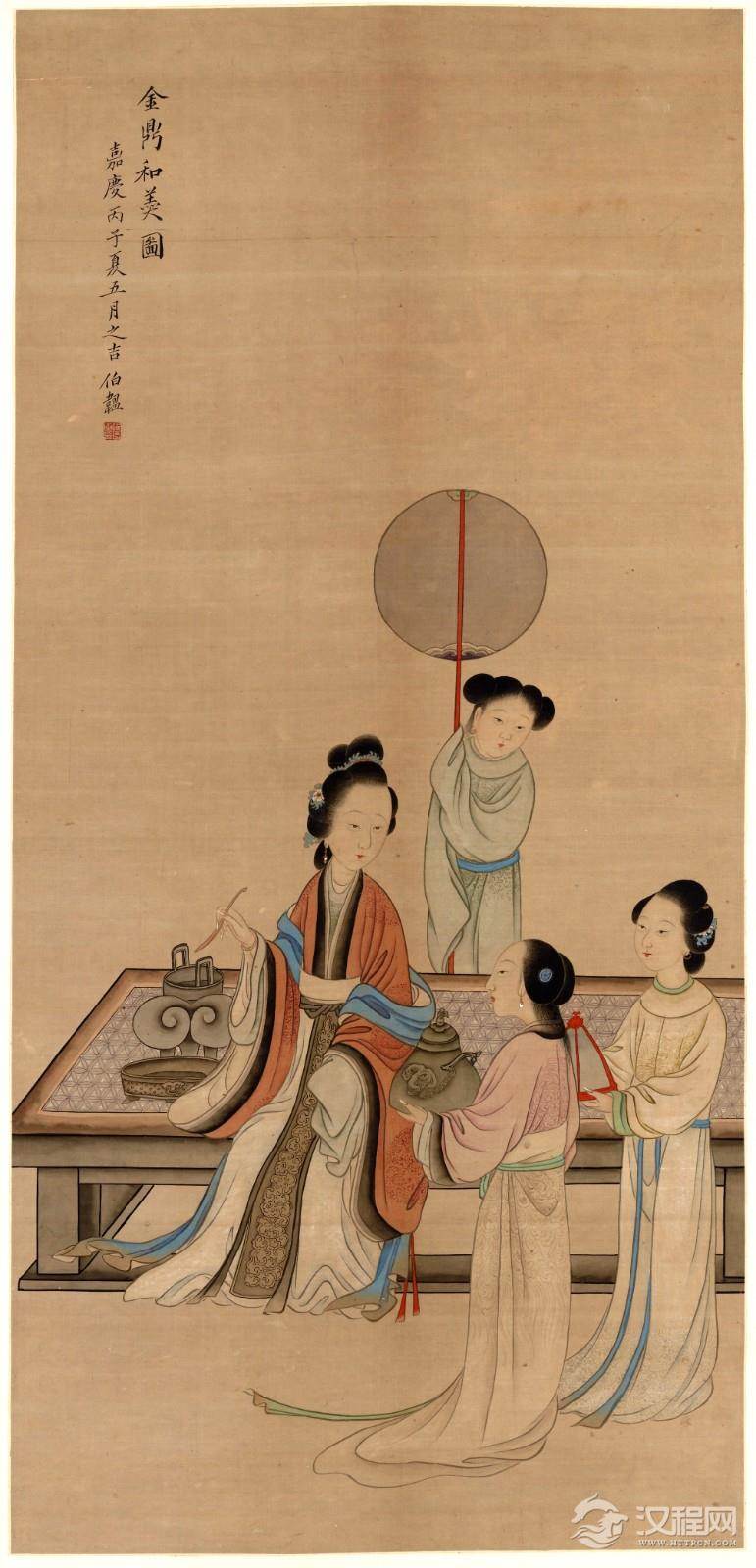 此图为改琦53岁时所作,他在好友黄荛圃处看到同时代画家余集(号秋室)创作的《元机诗意图》,笔情秀逸,风神清朗,颇有感触,于是趁兴挥毫绘成此图。