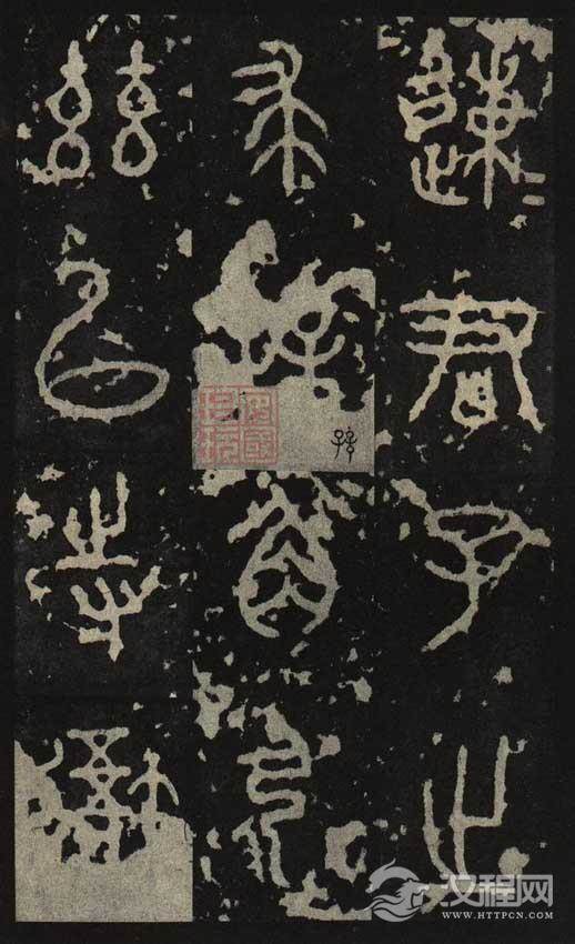 石鼓文 先秦刻石文字 。我国遗存至今的石刻文字,要属《石鼓文》时间最早和最具代表性。石作鼓形,共十鼓,分别刻有四言诗一首,径约三尺余。内容记述秦国君游猎,故又称“猎碣”。因被弃于陈仓云野,也称“陈仓十碣”。所刻为秦始皇统一文字前的大篆,即籀文。石原在天兴(今陕西宝鸡)三畤原,唐初被发现。自唐代杜甫、韦应物、韩愈作歌诗以后,始显于世。一说为宋代司马池(司马光之父)搜得其九,移置府学,皇祜(1049—1053)间向传师始得其全。大观(1107—1110)中迁至东京(今河南洛阳)辟雍,后入内府保和殿稽古阁。金人破汴,辇归燕京,置国子学大成门内。1937年抗战爆发后,石鼓文南迁至蜀,战争结束后始运回北平,现藏故宫博物院。其刻石年代,唐代张怀瓘、窦皋、韩愈等以为周文王时物;韦应物等以为周宣王时物;宋代董逋、程大昌等以为周成王时物;金代马定国以为西魏大统十一年(545)刻;清代俞正燮以为北魏太平真君七年(446)刻;以为秦物者,始自宋代郑樵,清代震钧以为秦文公时物;今人马衡以为秦穆公时物,郭沫若以为秦襄公时物,唐兰则考为秦献公叶十一年(前374)刻,详见《石鼓年代考》。刻石文多残损,北宋欧阳修所录已仅存四百六十五字,明代范氏《天一阁》藏宋拓本仅四百六十二字,今其中一鼓已一字无存唐初“虞、褚、欧阳共称古妙”(引自《元和郡县图志》)。张怀瓘《书断》云:“《石鼓文》开阖古文,畅其戚锐,但折直劲迅,有如铁针而端委旁逸又婉润焉。”近人康有为《广艺舟双楫》谓:“《石鼓》如金钿委地,芝草团云不烦整裁自有奇采。”传世墨拓善本有元代赵孟頫藏本(即范氏《天—阁》藏本)、明代安国藏中权本、先锋本(亦称“前茅本”)、后劲本,皆宋拓本。《天一阁》本已毁于火,后三种俱在日本。有影印本行世。原石现藏故宫博物院。