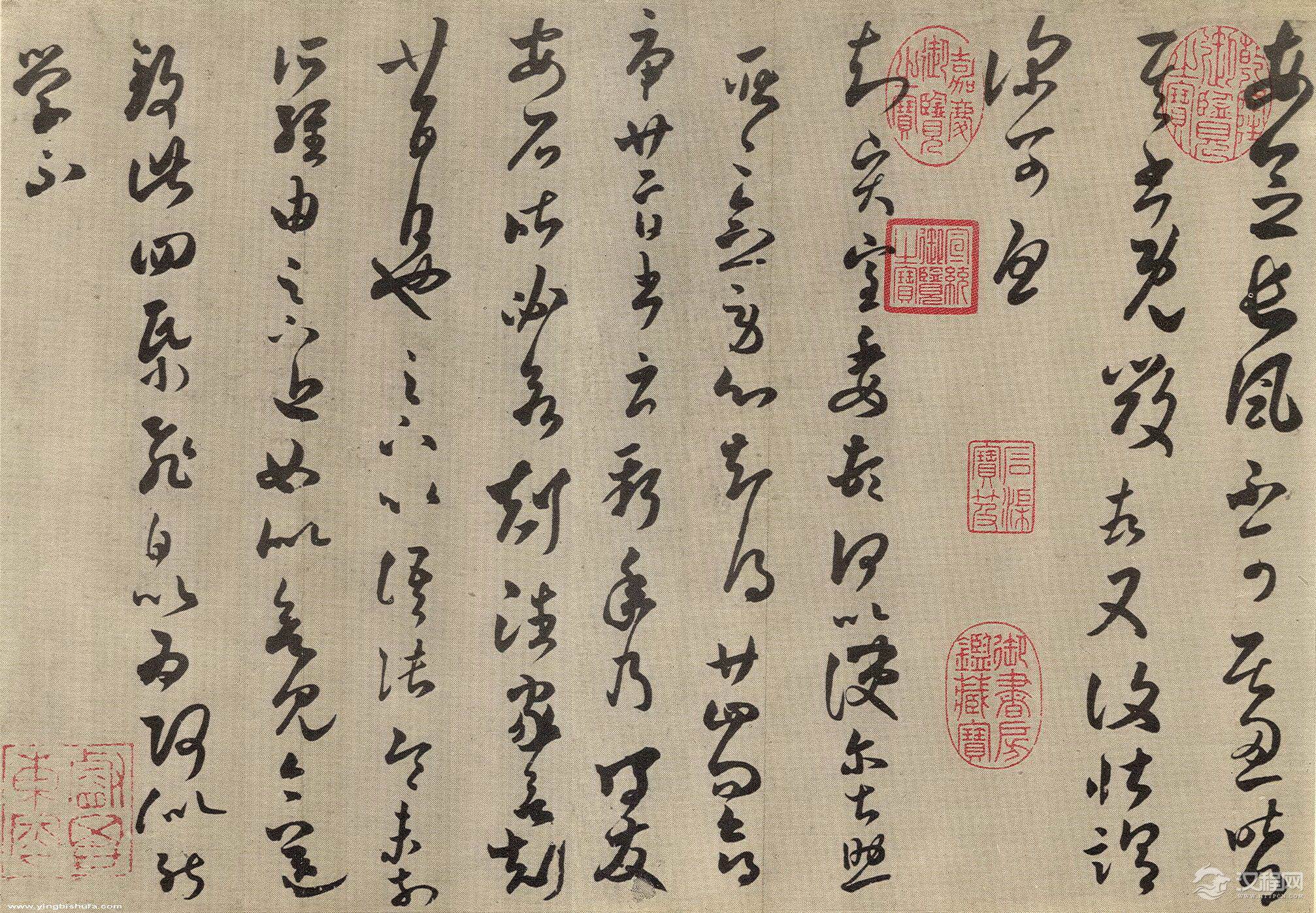 王羲之《长风帖》,临摹本,纸本。纵27.5厘米,横40.9厘米。11行,102字。草书。台北故宫博物院藏。《长风帖》又分称《长风帖》、《贤室委顿帖》、《四纸飞白帖》。
