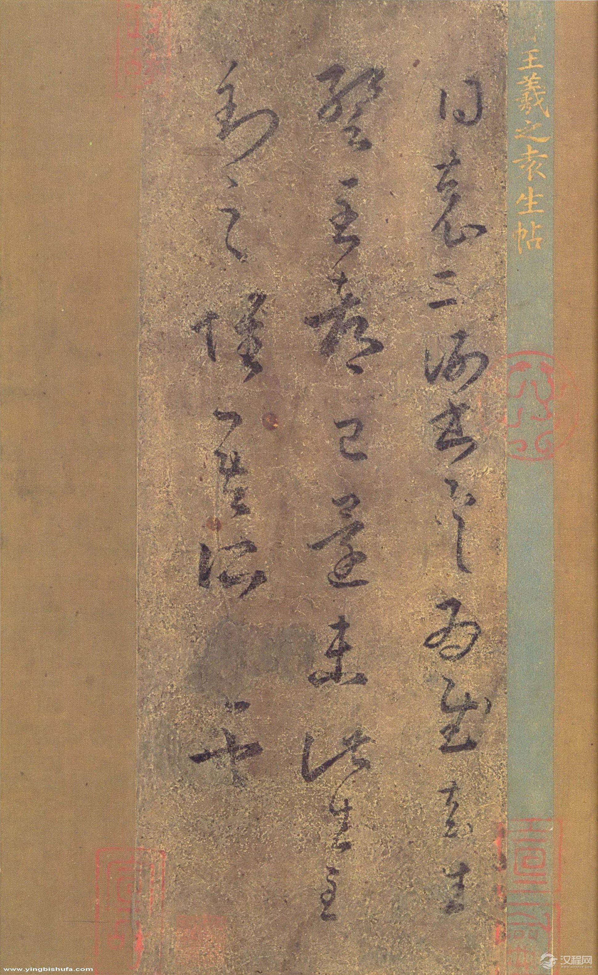 《袁生帖》为唐摹本,硬黄纸。唐张彦远《法书要录》卷十《右军书记》著录九十七字。此摹本草书三行二十五字,是著录全文的四分之一(详见本志《书迹目录》)。至宋入宣和御府,《宣和书谱》著录。