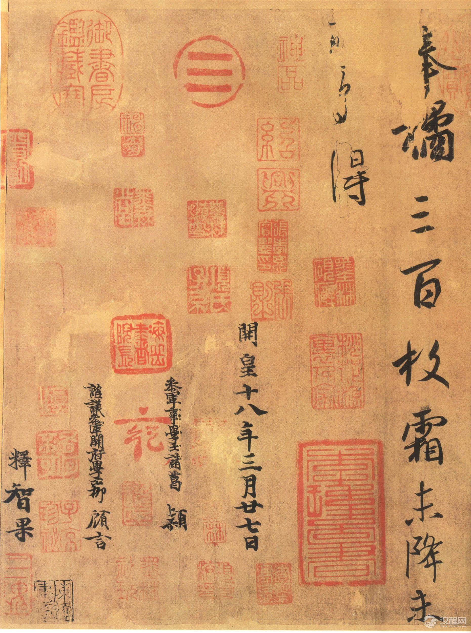 释文:奉橘三百枚霜未降未可多得。
