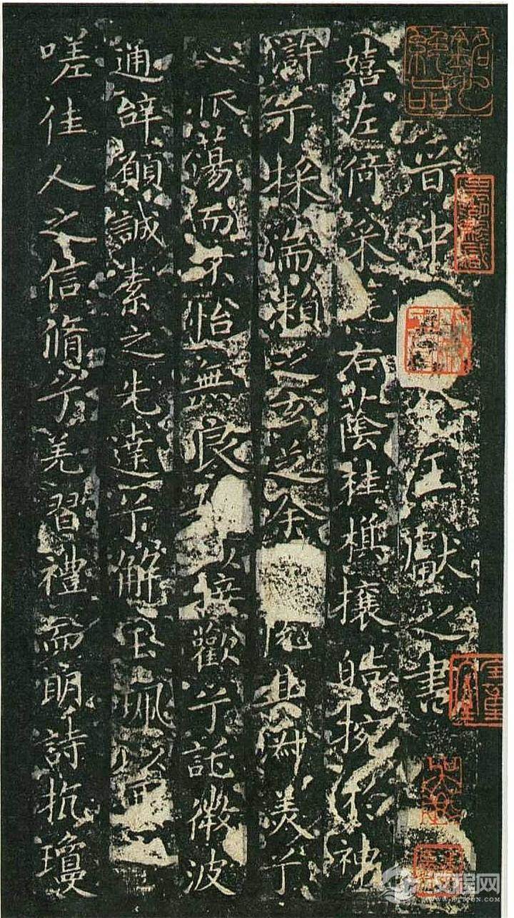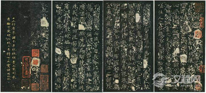 流传甚广的碧玉版剪裱本,十三行变为二十八行,失去了原来分行布白之意趣,这是在欣赏时需要注意的。