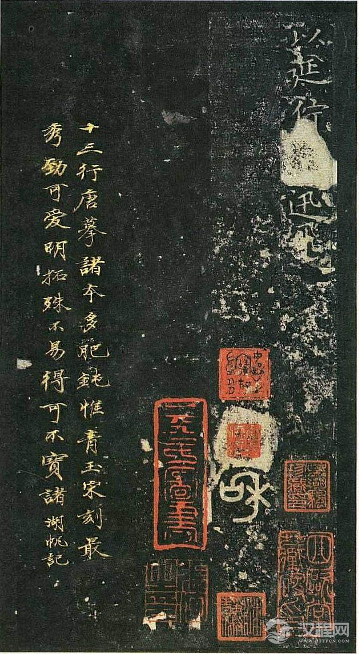 《玉版十三行》是王献之小楷代表作,被誉为“小楷极则”,笔划隽秀挺拨,结字萧散逸岩,顾盼有致,盛名千年不衰。墨迹在宋元时有两本,一为晋麻笺本;一为唐硬黄本,上有柳公权跋,疑为柳公权临本。此二本后均佚,流传的刻本有二,一为“碧玉版本”,一为“白玉版本”。世以“碧玉版本”为优。“碧玉版本”明万历年间出土于杭州西湖葛岭南宋贾似道半闲堂旧址,藏北京首都博物馆。