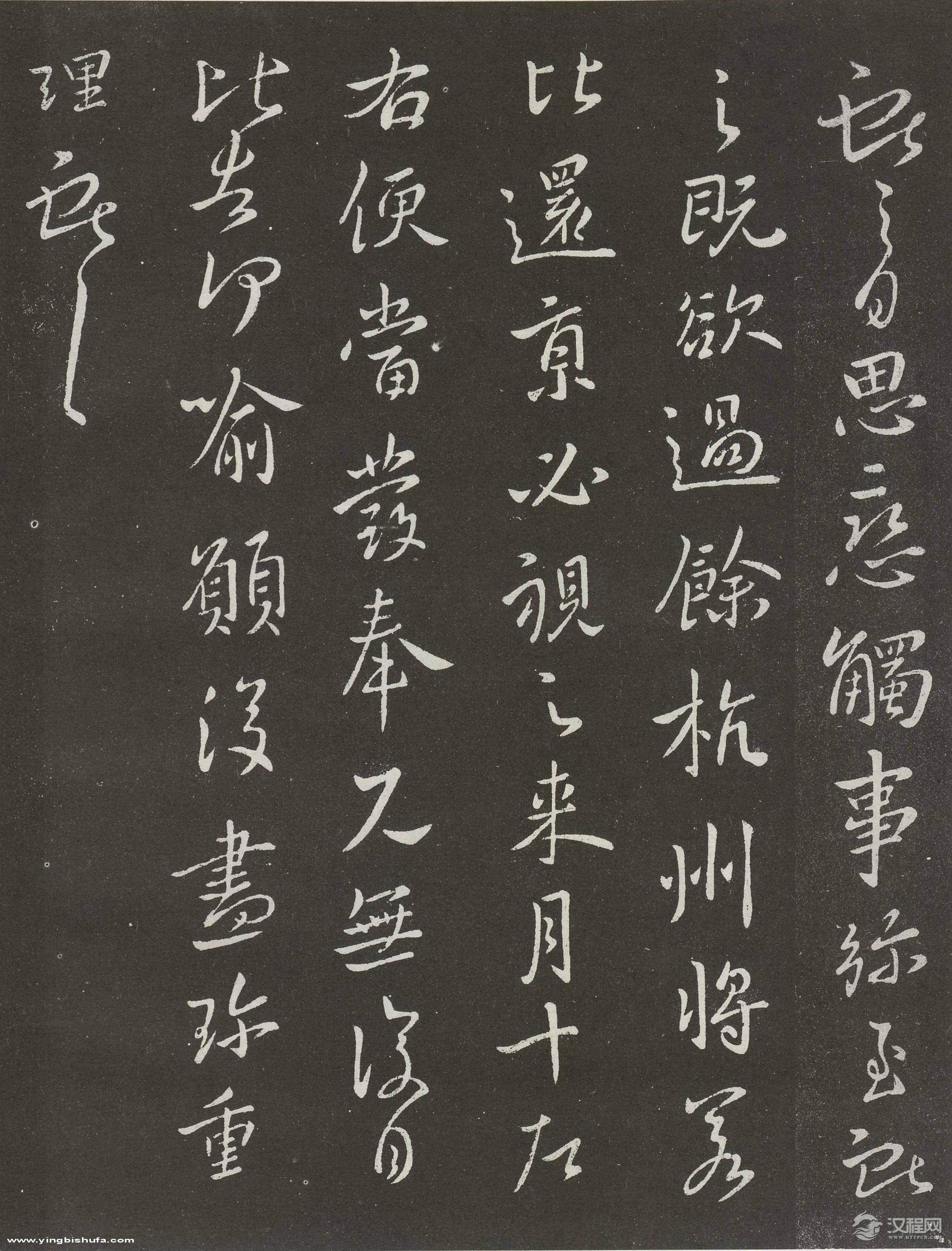 《余杭帖》拓本。6行,51字。行书。入刻《淳化阁帖》。