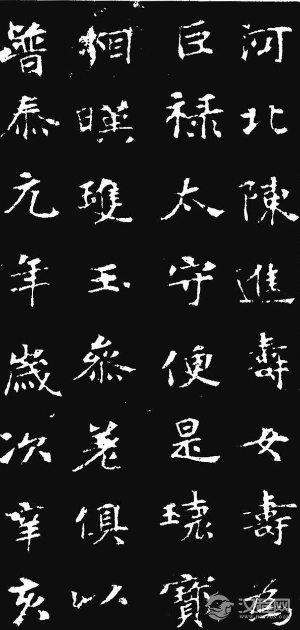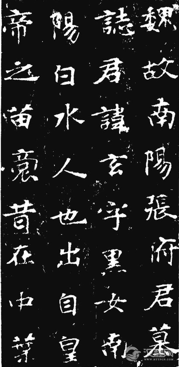 张玄字黑女,清代为熙帝讳,一般称《张黑女墓志》。此魏普泰元平(531年)十月刻。清包世臣跋:“此帖骏利如《隽修罗》,圆折如《朱君山》、疏朗如《张猛龙》、静密如《敬显隽》。”康有为跋:“化篆、分入楷、遂尔无种不妙,无妙不臻,然遒原精古,未有比肩《黑女》者。”此志集雄健、轻灵秀逸、含蓄为一体,其艺术水平之高,鲜有匹敌。代表北魏善墓志的最高成就。