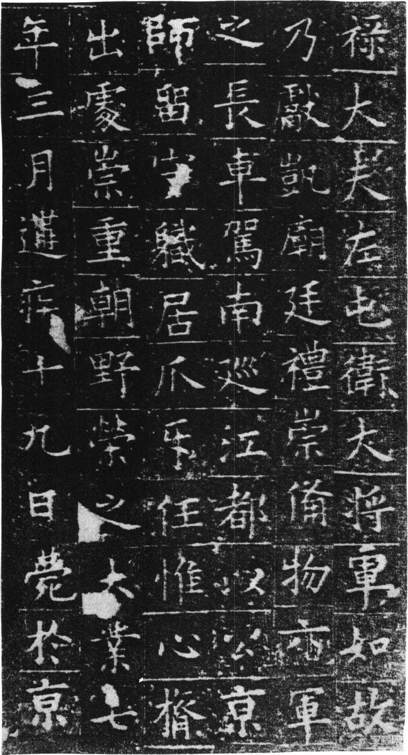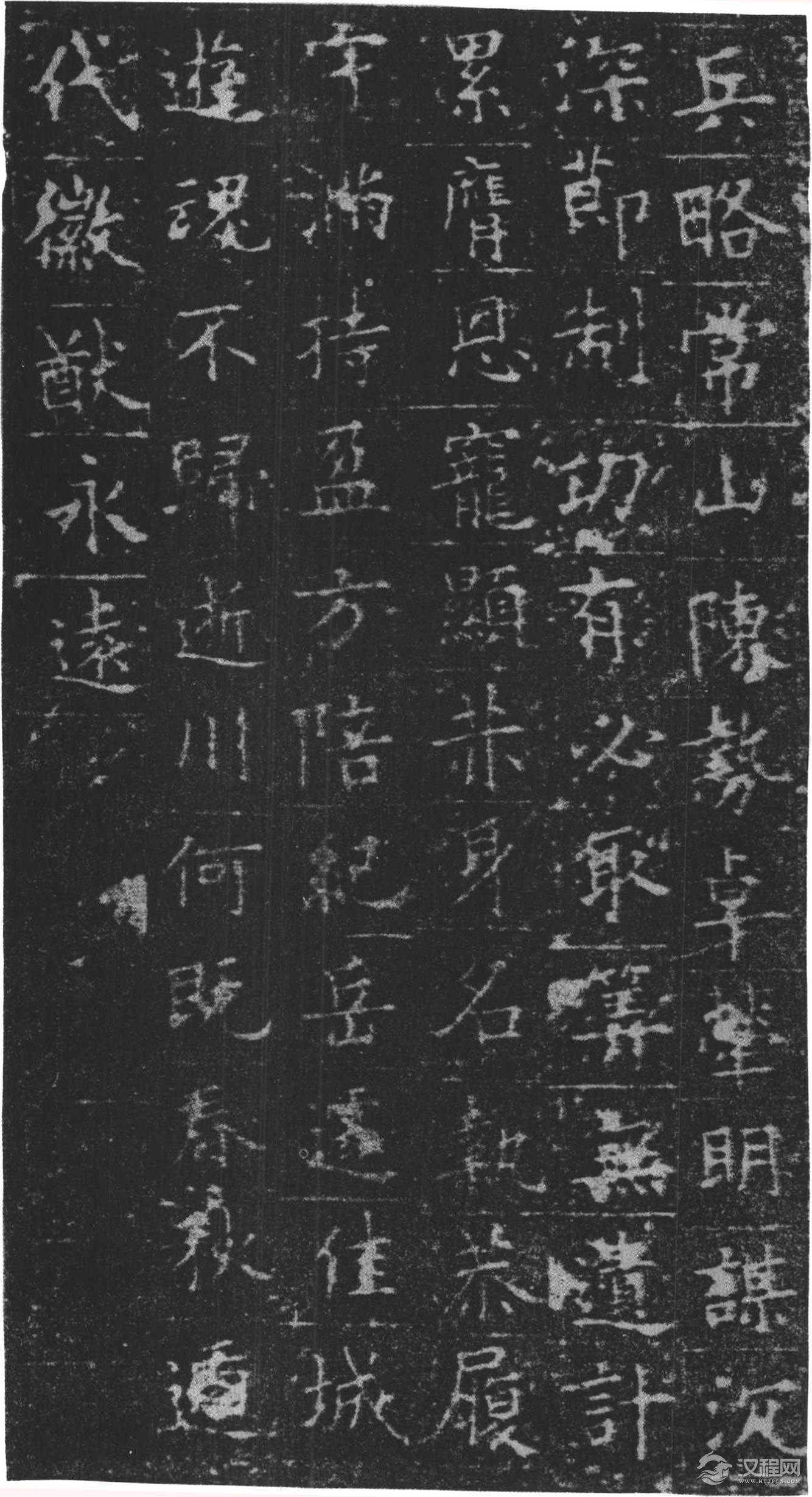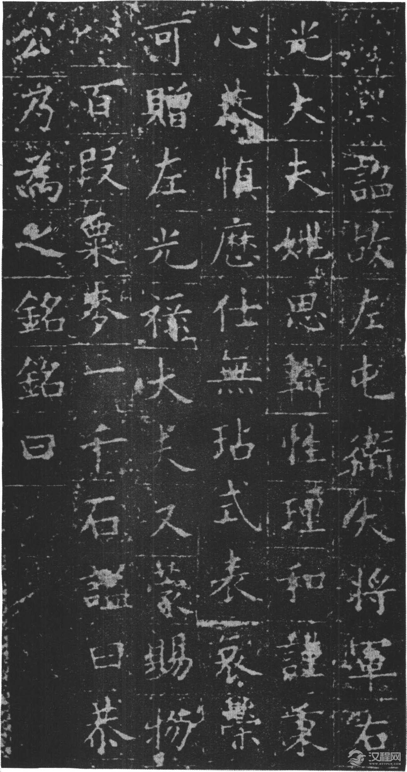 铭曰:长澜若水,远馥薰风。时贤继及,世德攸隆。勤王成务,启霸垂功。炳灵不已,玄宫冥照。落雁穷能,通猿尽妙。蹶张选勇,期门待诏。职分七萃,官联五营。入登陪卫,出拥高旌。汜水兵略,常山陈势。卓荦明谋,沉深节制。功有必取,算无遗计。累膺恩宠,显赫身名。执恭履慎,守满持盈。方陪祀岳,遽掩佳城。游魂不归,逝川何既,春秋递代,徽猷勿替。万文韶刻字。