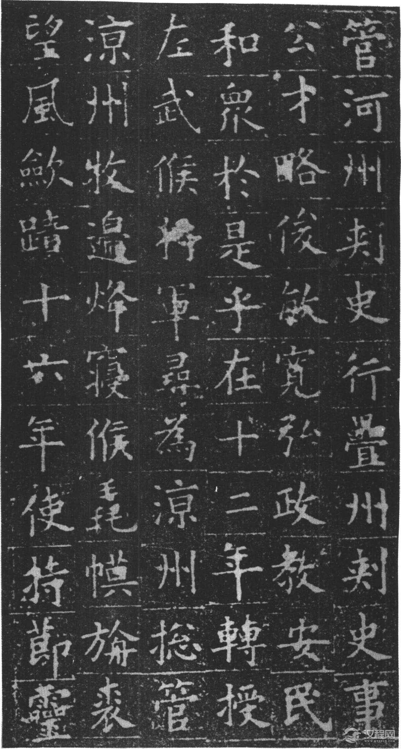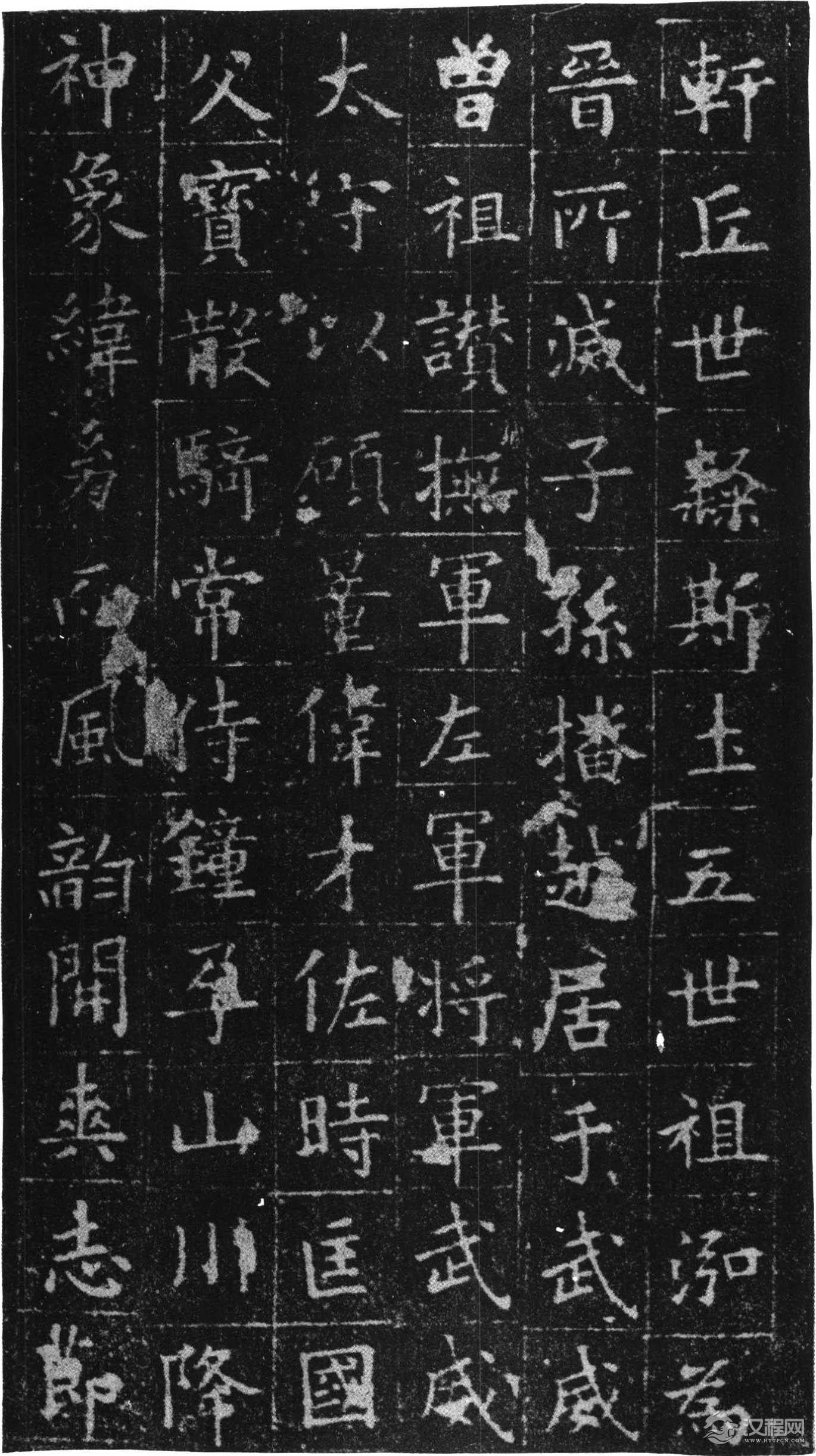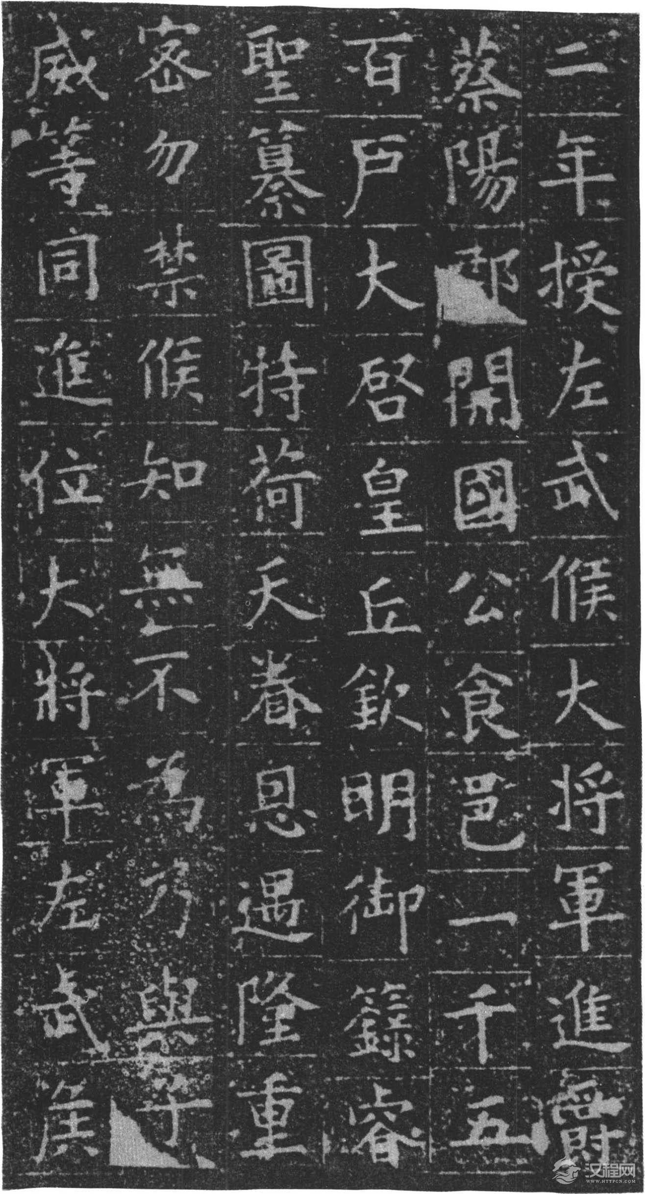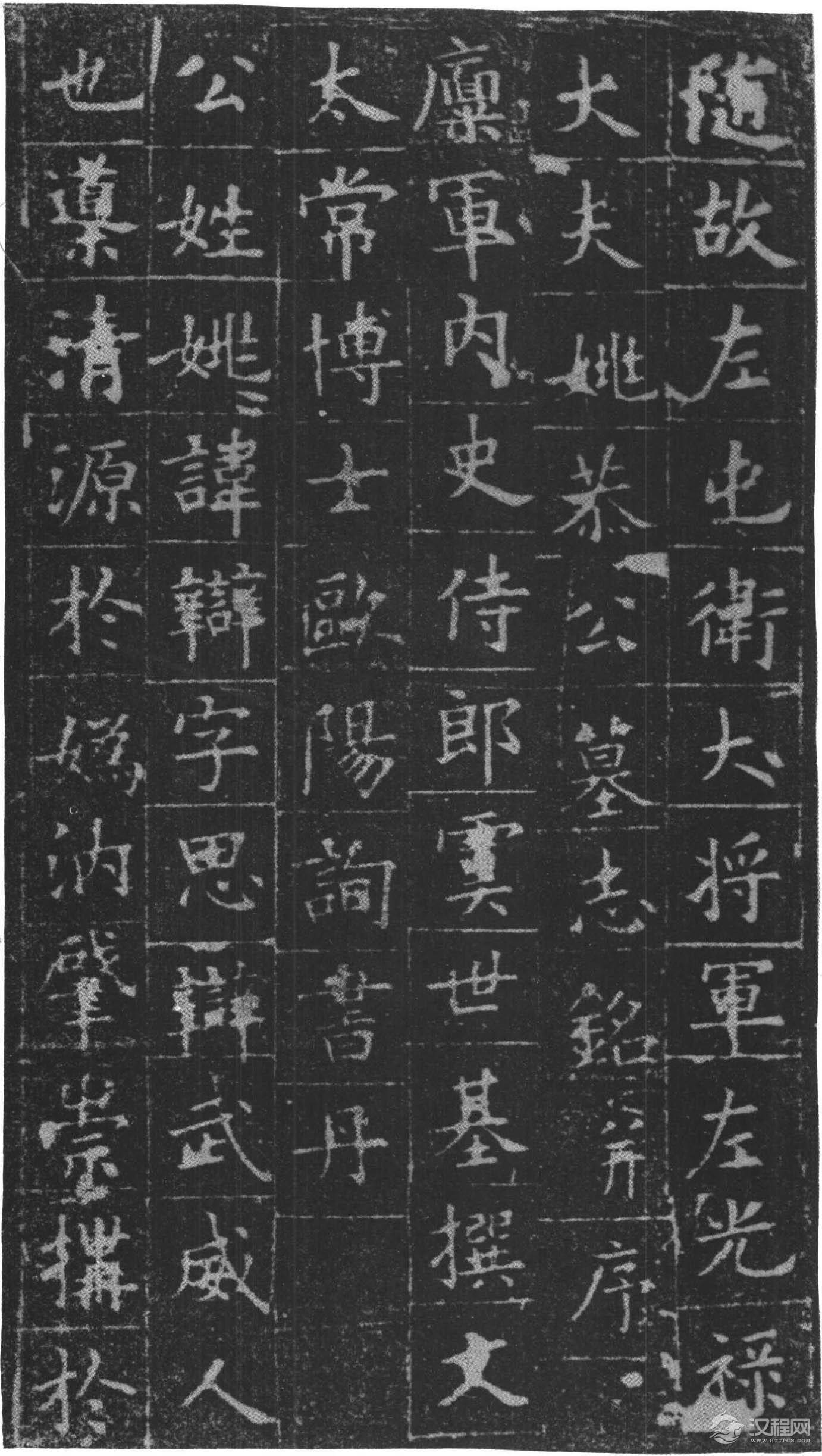 铭曰:长澜若水,远馥薰风。时贤继及,世德攸隆。勤王成务,启霸垂功。炳灵不已,玄宫冥照。落雁穷能,通猿尽妙。蹶张选勇,期门待诏。职分七萃,官联五营。入登陪卫,出拥高旌。汜水兵略,常山陈势。卓荦明谋,沉深节制。功有必取,算无遗计。累膺恩宠,显赫身名。执恭履慎,守满持盈。方陪祀岳,遽掩佳城。游魂不归,逝川何既,春秋递代,徽猷勿替。万文韶刻字。