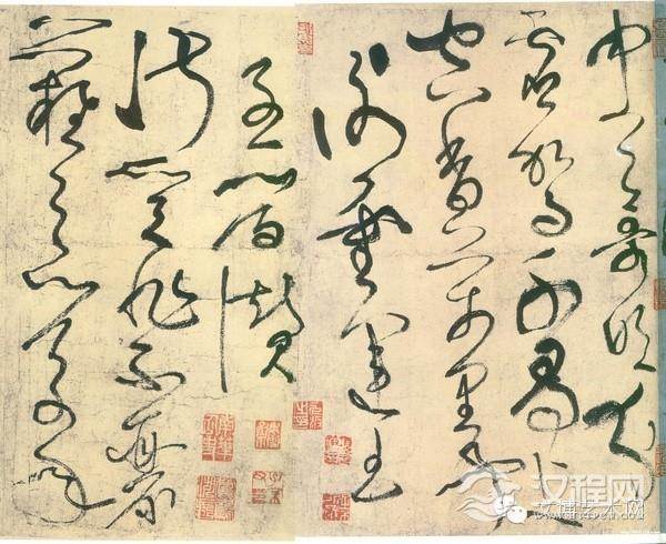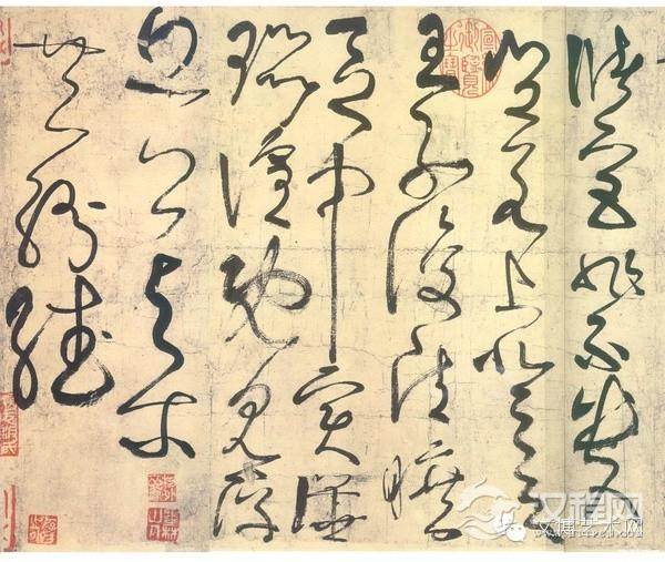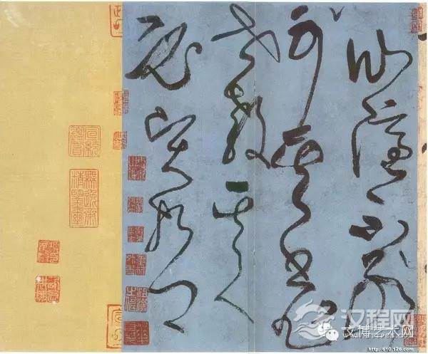 书家 传为唐张旭狂草之作,弥足珍贵。认为此卷为张旭所书的观点,始见于董其昌的题跋,当代学者启功和谢稚柳二人对此观点持不同的看法。 启功认为,董其昌题跋劈空定论,全不可信,并根据原文“北阙临玄水”一句帖中写作“丹水”,推定此卷为北宋时所书。* 谢稚柳则根据传世颜真卿、怀素、杨凝式、黄庭坚等人的书法风格传承关系,肯定了此卷为张旭所书的观点。