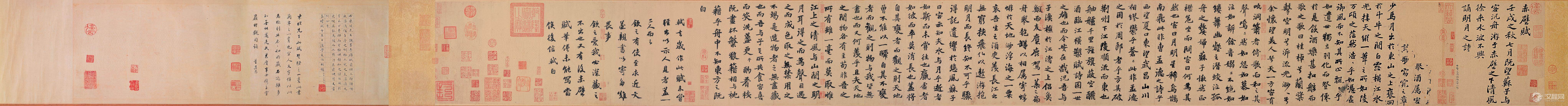 北宋苏轼行楷书。素笺墨迹卷。纵23.9公分,橫258公分。字共六十六行。前五行三十六字已缺,由明代文徵明补书。台北故宫博物院藏。