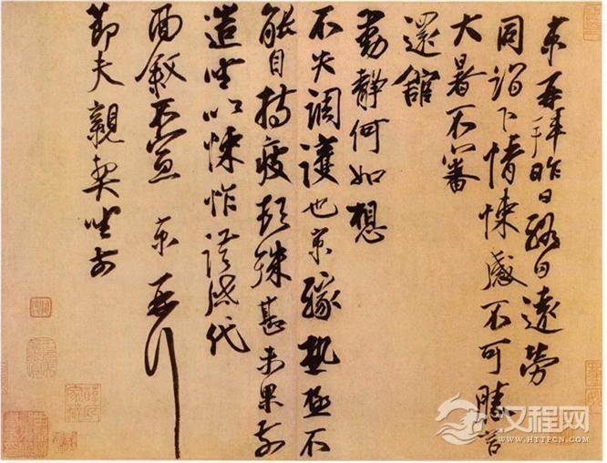 此帖书法近似北宋四家之一的米芾,笔力雄健,气势亦不同凡响。尽管他的书法似米芾,但从他那姿媚的笔法来看,还是从唐人书法入手,直溯“二王”,即从此帖能清楚地看出其精细的笔意与健丽的体态。用笔挥洒自然,而不放纵的高雅格调;结字方面,字字笔划轻重不同,出自天然;起笔落笔呼应,创造出多样统一的字体;分行布白方面,每字每行,无不经过精心安排,做到左顾右盼之中求得前后呼应,达到了气韵生动的境地。在此必须说明的是,对蔡京较高的书法造诣应给予一定的地位,决不能因人废字,应客观地来评述他的书法才好。