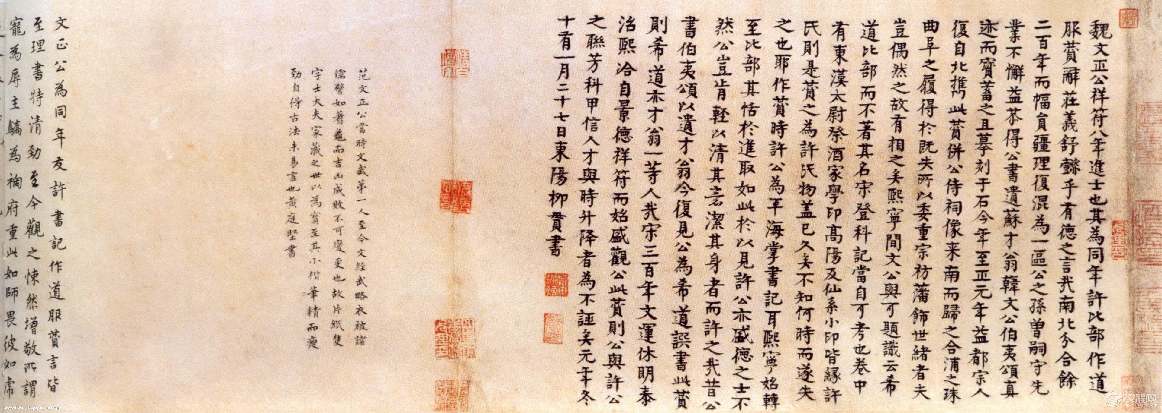 范仲淹《道服赞》,小楷,纸本,手卷,纵34.8cm,横47.9cm。楷书8行。北京故宫博物院。
